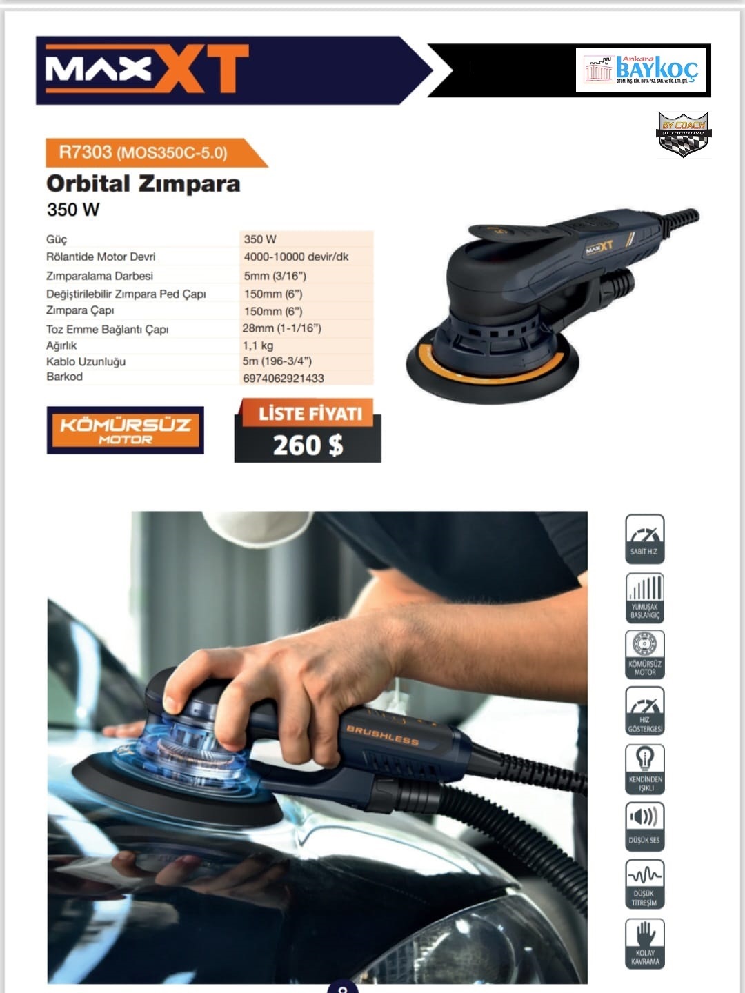 MaxXT R7303 MOS350C Elektrikli Orbital Zımpara Makinesi